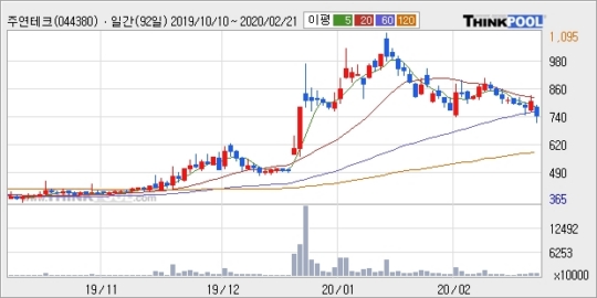 [그래프]주연테크 일봉 차트[표] 거래원 상위(09:09 기준)