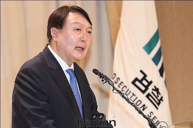 윤석열 검찰총장이 지난 1월 2일 오후 서울 서초구 대검찰청에서 열린 2020년도 신년다짐회에 참석해 신년사를 하고 있다. ⓒ데일리안 류영주 기자더불어민주당 일부 의원들이 '독재 배격' 발언을 한 윤석열 검찰총장을 향해 공개적으로 사퇴를 요구하며 공세를 이어가고 있다. 김두관 의원은 윤 총장 해임촉구 결의안까지 발의하겠다고 나섰다. 다만 당 지도부는 윤 총장 거취에 대한 말을 아끼며 "당 차원에서 해임촉구 결의안에 대한 논의는 없을 것"이라고 선을 그었다.